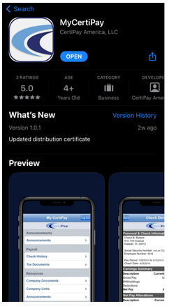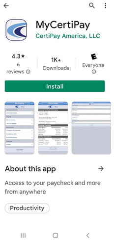 Vaya a la App Store en su dispositivo y escriba "Mi CertiPay" en la barra de búsqueda. Haga clic en Get o Install para descargar la aplicación My CertiPay.