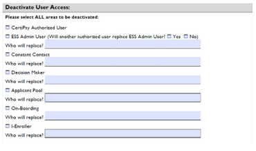 Deactivate User for The Following Control Number(s): enumere cada número de control asociado con su cuenta con nosotros a la que se debe eliminar el acceso del usuario. Esto asegurará que se elimine la seguridad adecuada de cada uno.