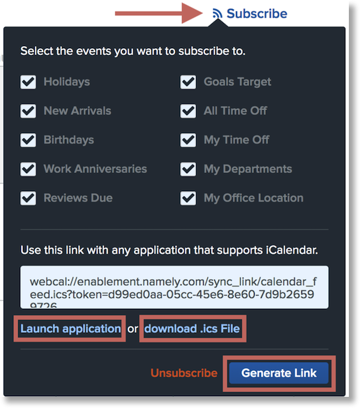 How can I sync the Namely calendar with my Google calendar?