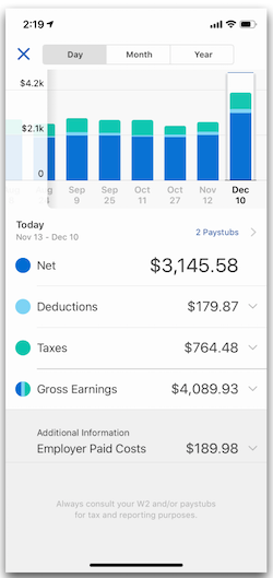 View your pay by Day (paydate), Month, or Year.