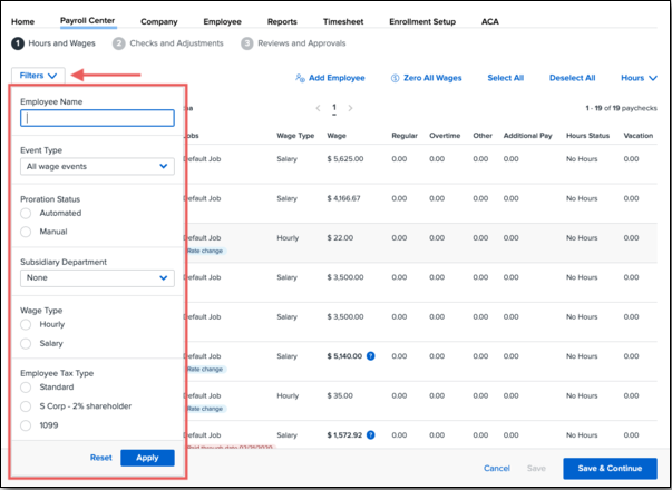 Wage Type: Filter by hourly or salaried employees.