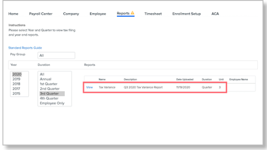 We've made it easy for you to to find the source of credits and debits posted to your Payroll account. Our new Tax Variance Report displays any credits or debits you've received due to tax variances by quarter.