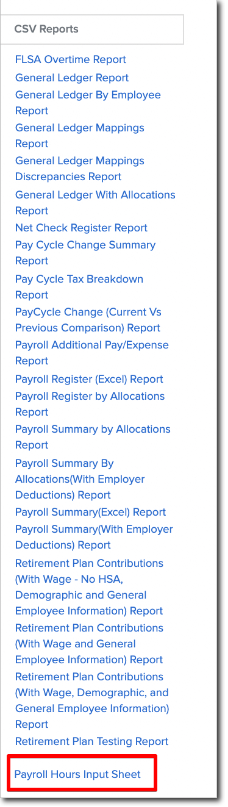 Under CSV Reports, click Payroll Hours Input Sheet.