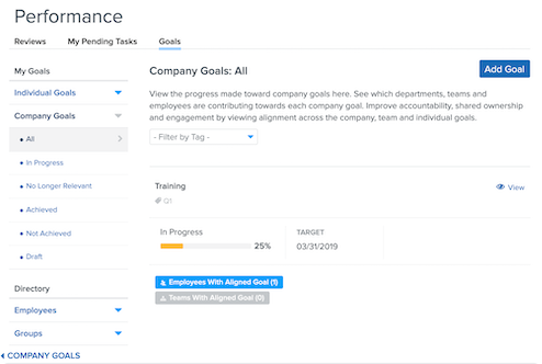 Our Goals feature empowers employees, managers and your HR team to set and track goals for your organization.
